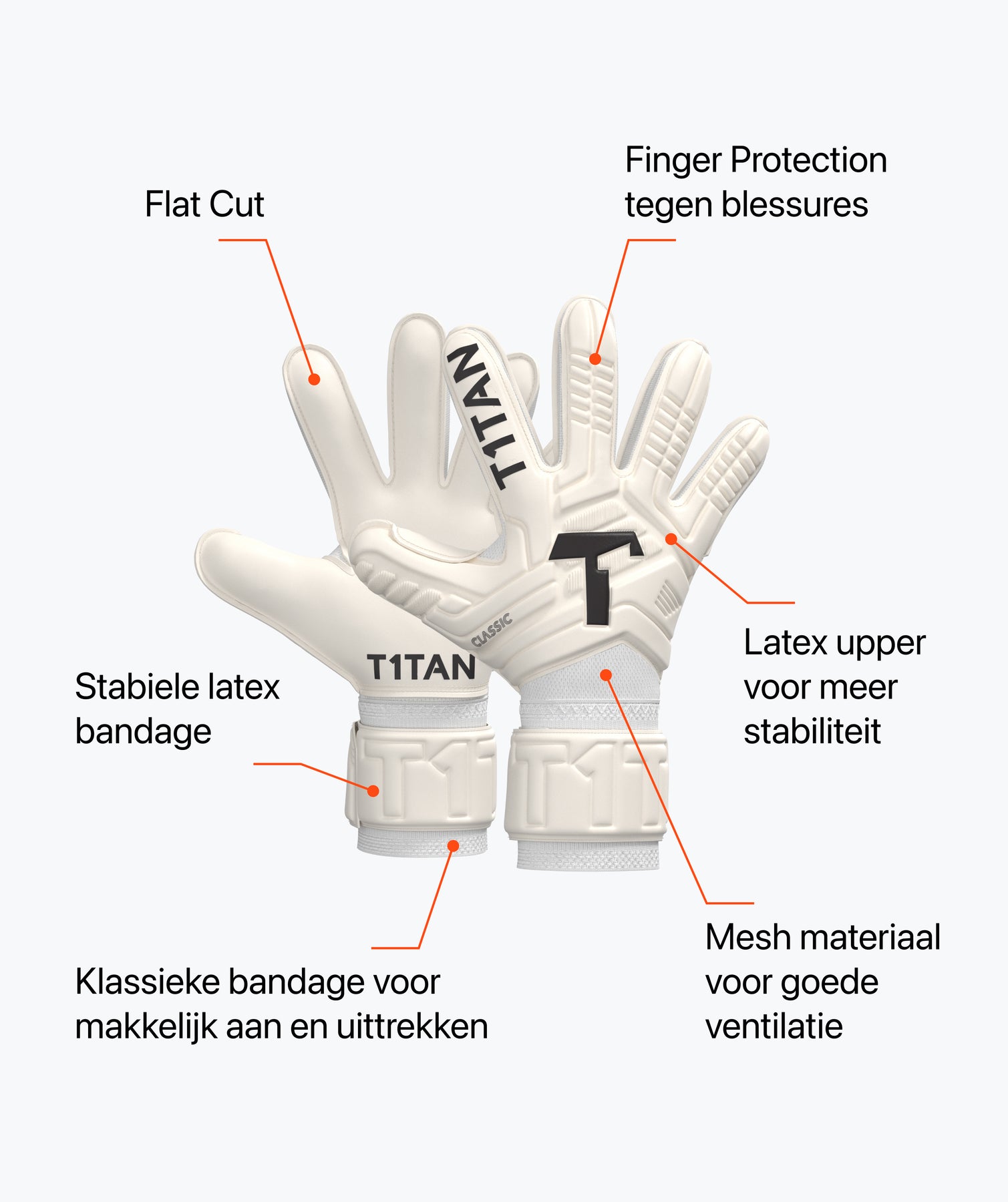 Geïnspireerd door onze beste profmodellen: de CLASSIC 1.0 WHITE-OUT biedt je sterke grip en is extreem slijtvast. Dit maakt het de perfecte T1TAN handschoen voor ambitieuze, beginners en veeleisende keepers.